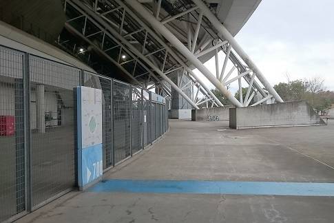 スタジアムの屋根のおかげで雨の日でも濡れずに走れるからありがたい!